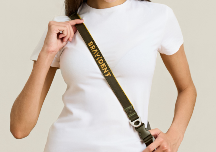 Soft neoprene-padded handle for ergonomic, non-slip comfort; can be worn on the waist or crossbody for hands-free walking.