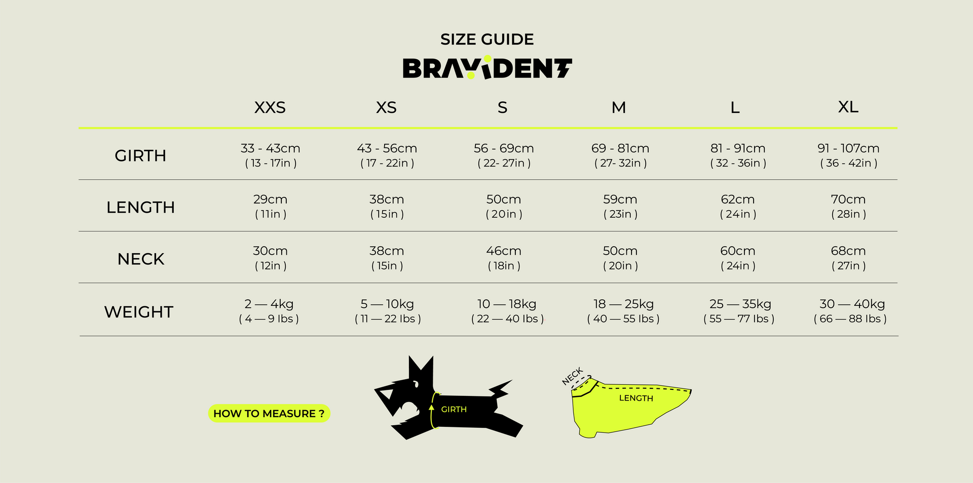 Refer to our size guide based on chest circumference and back length.